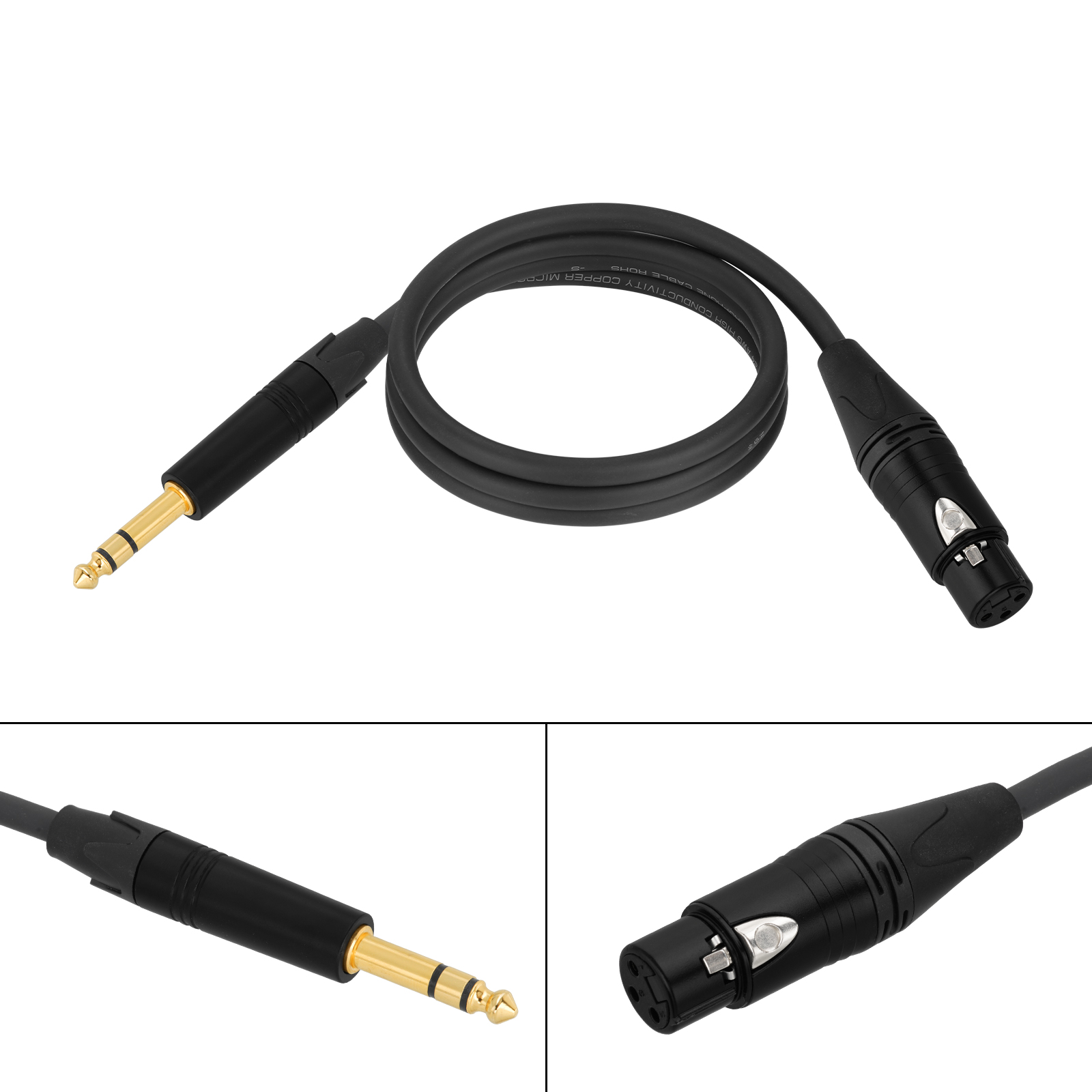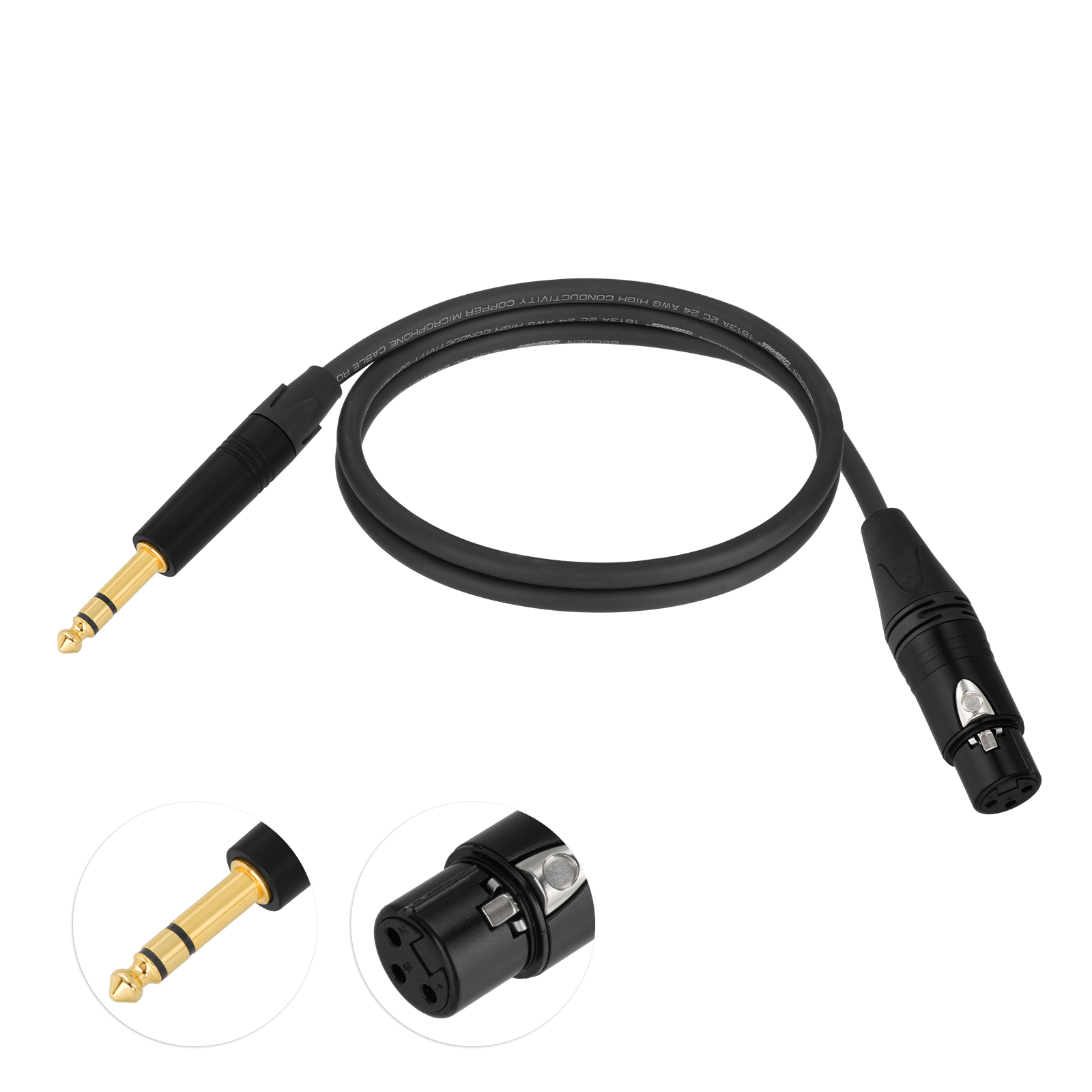 Cable type: Belden 1813A cable; Cable length: 100 cm/3.3FT; Connector 1: 6.35mm (1/4 Inch) TRS Male;Connector 2:XLR Female