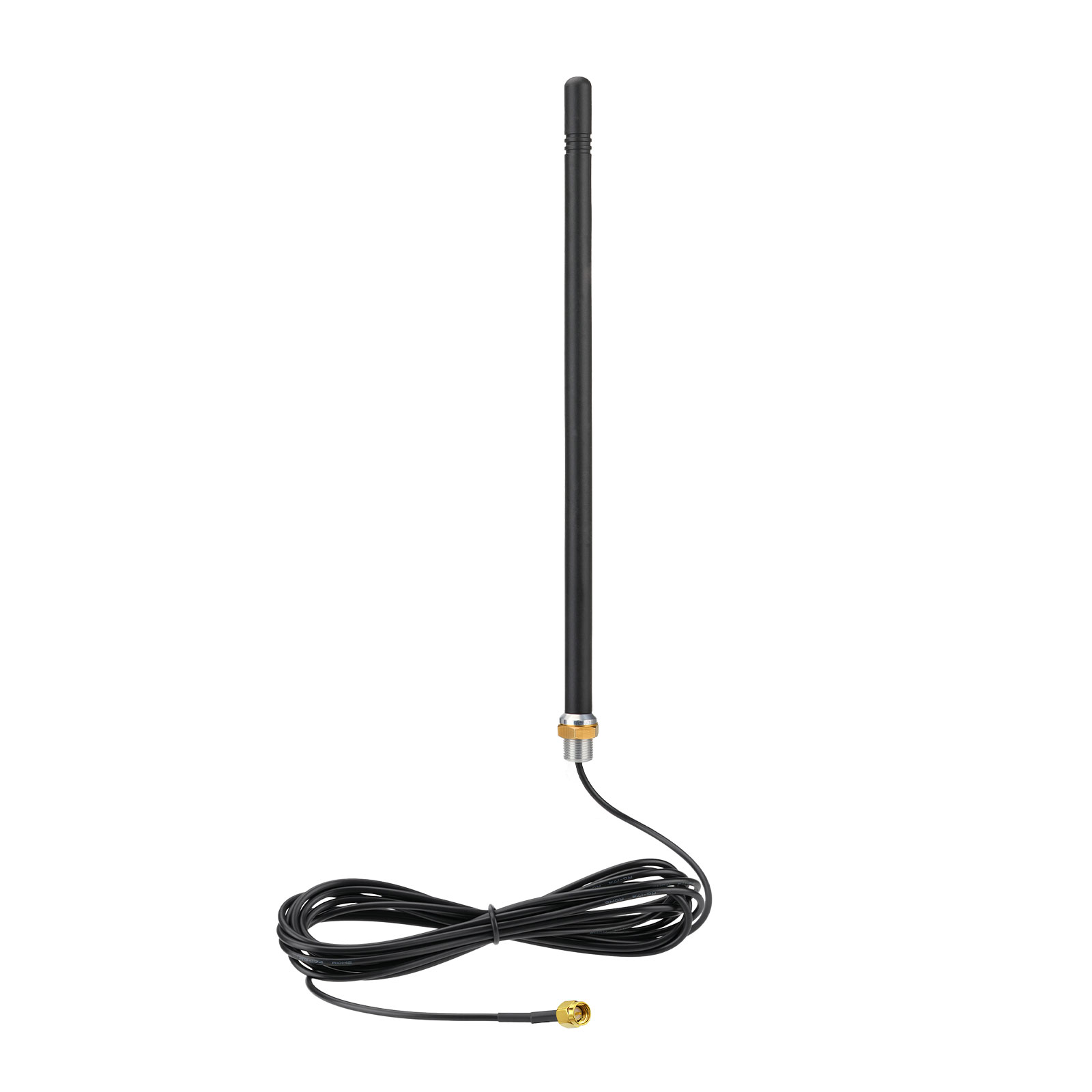 Frequency Range: 690-960 MHz, 1710-2170 MHz, 2300-2700 MHz; Gain: 5dBi; Direction: Omni-directional; Waterproof: Rainning Proof; Feature: Fixed Wall Mount; Thru Hole Mount; Antenna Mounting Screws Diameter: M12 11.76mm-11.95mm; Cable Length: 3m/10 feet; Connector: SMA Male Connector;